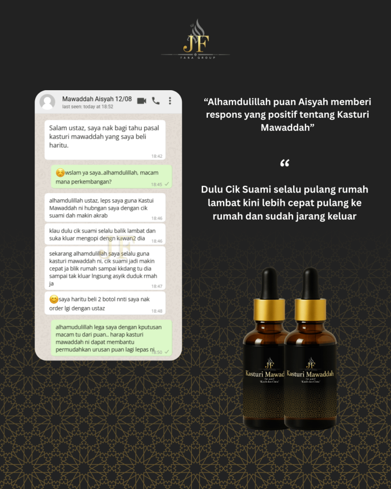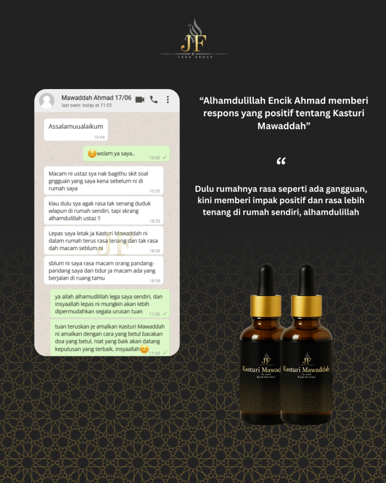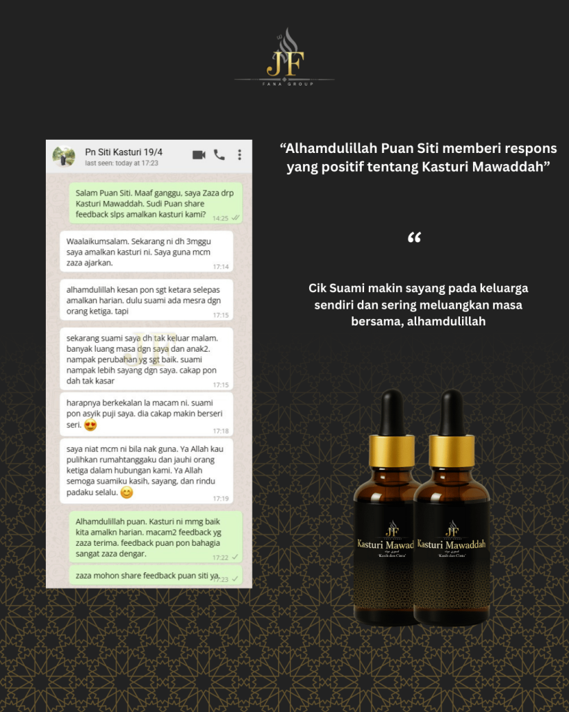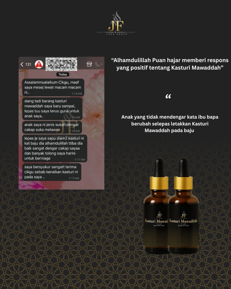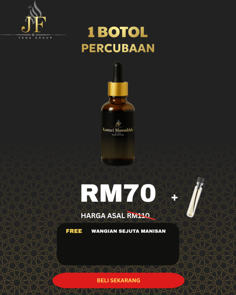 Wangian ini bukan sekadar bau — ia adalah lambang keanggunan dan ketenangan jiwa. Setiap titisan kasturi menyampaikan karakter dan keperibadian yang terpuji. Sebarkan haruman bukan hanya pada tubuh, tetapi juga dalam keindahan akhlak dan tutur kata. Kadang-kadang, seseorang dikenang bukan kerana suara… tetapi kerana wanginya.